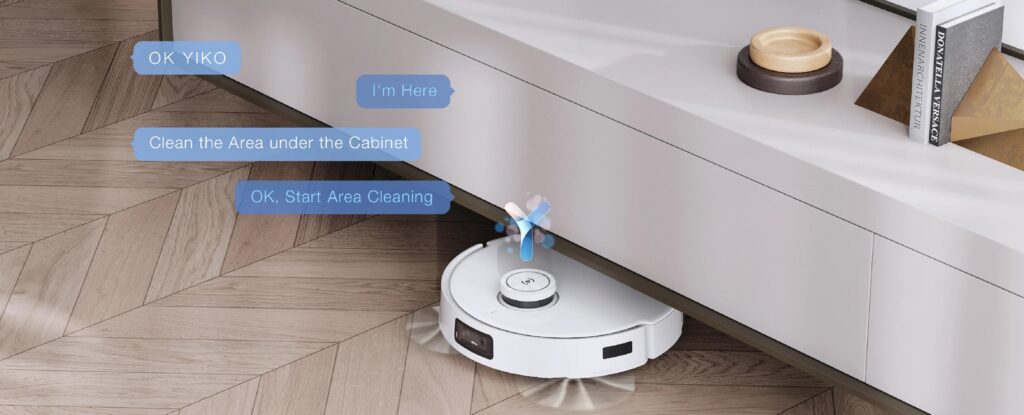 Mūsų pramonėje pirmaujantis YIKO AI balso asistentas palengvina gyvenimą su galinga balso duomenų baze ir balso atpažinimo technologija. Naudodamas natūralios kalbos įvestį, jis tiksliai supranta jūsų valymo komandas, atsako ir imasi veiksmų. Jis taip pat palaiko garso lokalizaciją ir žmogaus formos atpažinimą. Paskambinus OK YIKO, jūsų DEEBOT išvalys grindis pagal iš anksto nustatytą plotą aplink garso šaltinį. *Suderinama tik su anglų kalba.
