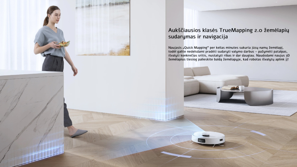 Ozmo turbo valymo sistema – tai besisukančios šluostės, kurios grįžus robotui į įkrovimo stotį yra išplaunamos ir išdžiovinamos karštu oru. Jums nereikia rūpintis jas plauti. Už jus tai padarys robotas.
