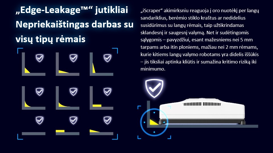 | Pagrindiniai privalumai | Edge-Leakage™ jutikliai Maksimalus kampų pasiekiamumas |