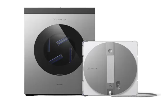 Pirmasis ECOVACS robotinis langų valytuvas su nešiojamąja stotimi.