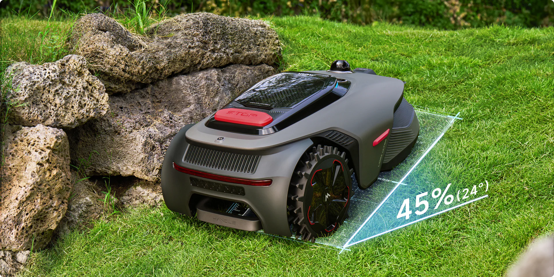 Robotas sklandžiai juda per įvairų reljefą, lengvai įveikia vejos kraštus ir kliūtis, užtikrindamas tolygų bei tvarkingą pjovimo rezultatą visoje teritorijoje.