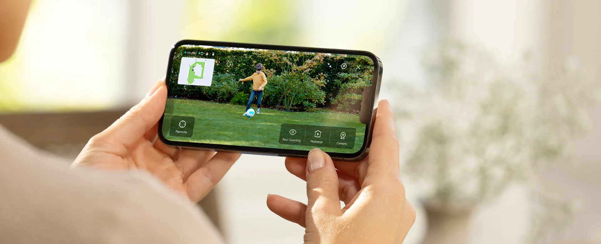 Ecovacs G1-2000 suteiks jums visapusišką apsaugą. Vienu metu kelių vietų sodo priežiūra – Ecovacs mobilioje programėlėje galima pridėti iki 10 stebėjimo vietų su robote esančia 360° panoramine vaizdo kamera, užtikrinančią Jūsų ir Jūsų turto saugumą. Be to, galite gauti automatinius pranešimus į Ecovacs programėlę apie aptiktus žmones ant Jūsų vejos, o Jūsų duomenys išlieka saugūs naudojant TüV Rheinland sertifikuotą duomenų apsaugą.